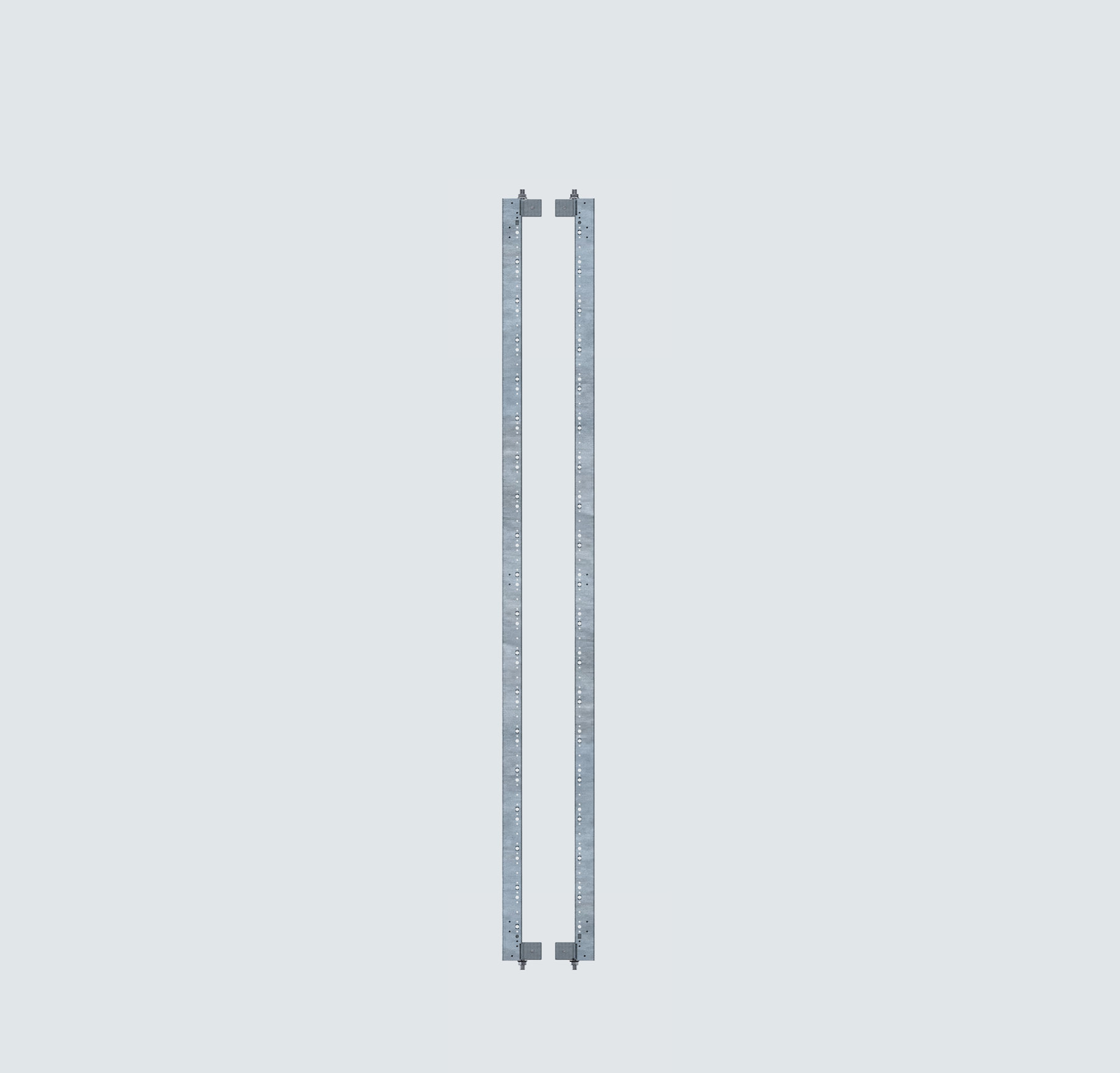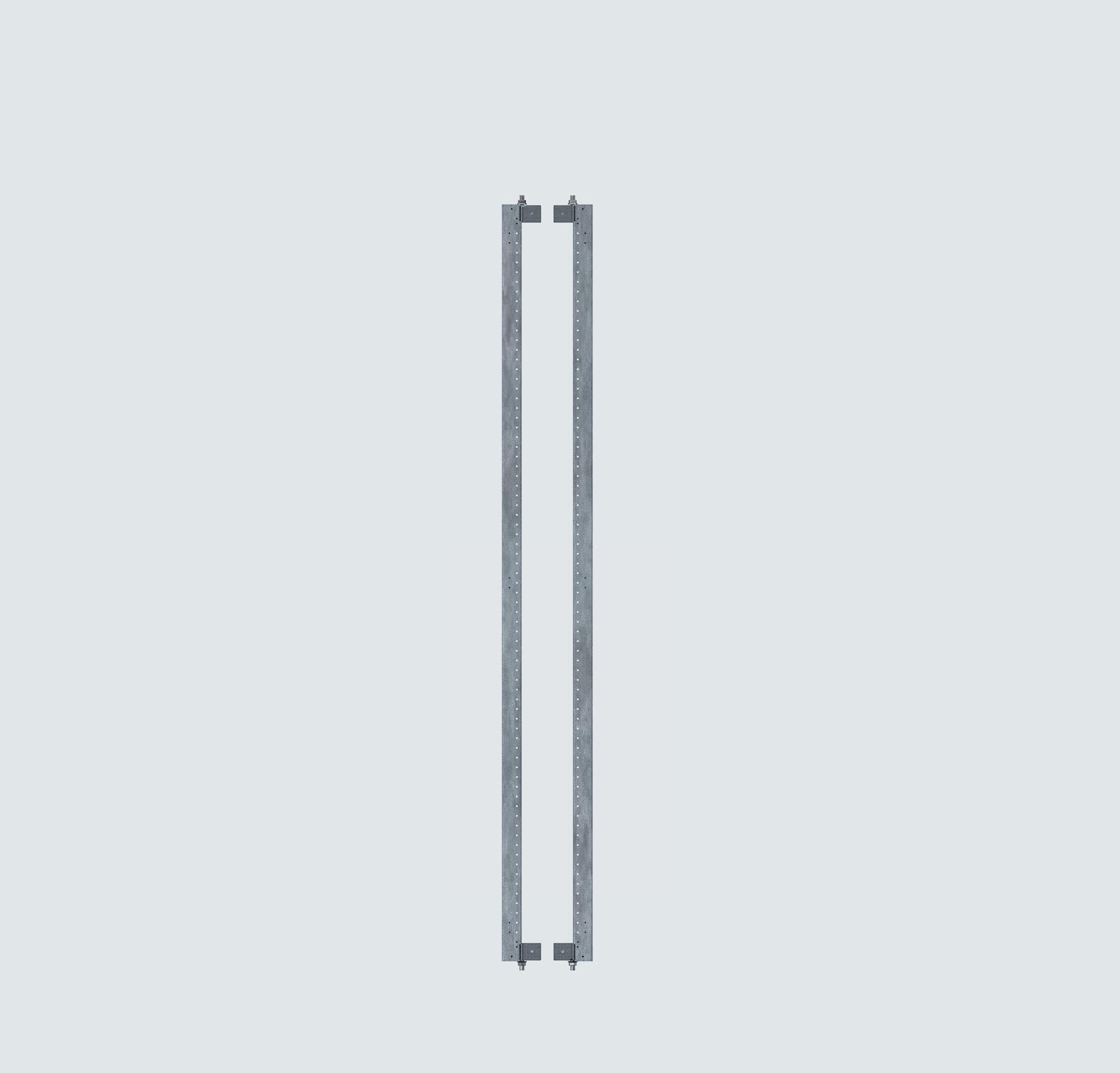 Dikey Profil Takımı (İç Şasi), ekipman montajı için kabin içinde dikey taşıyıcı yüzey sağlamak amacıyla tasarlanmıştır. 2.0 mm kalınlığında galvaniz sacdan üretilmiş olup, galvaniz kaplama veya elektrostatik toz boya (RAL 7035) yüzey seçenekleri sunar. Boyutları kabin ölçülerine göre değişiklik gösterir. Özel bükümlü ve yüksek mukavemetli yapısı, dayanıklı ve güvenli bir montaj imkânı sağlar.