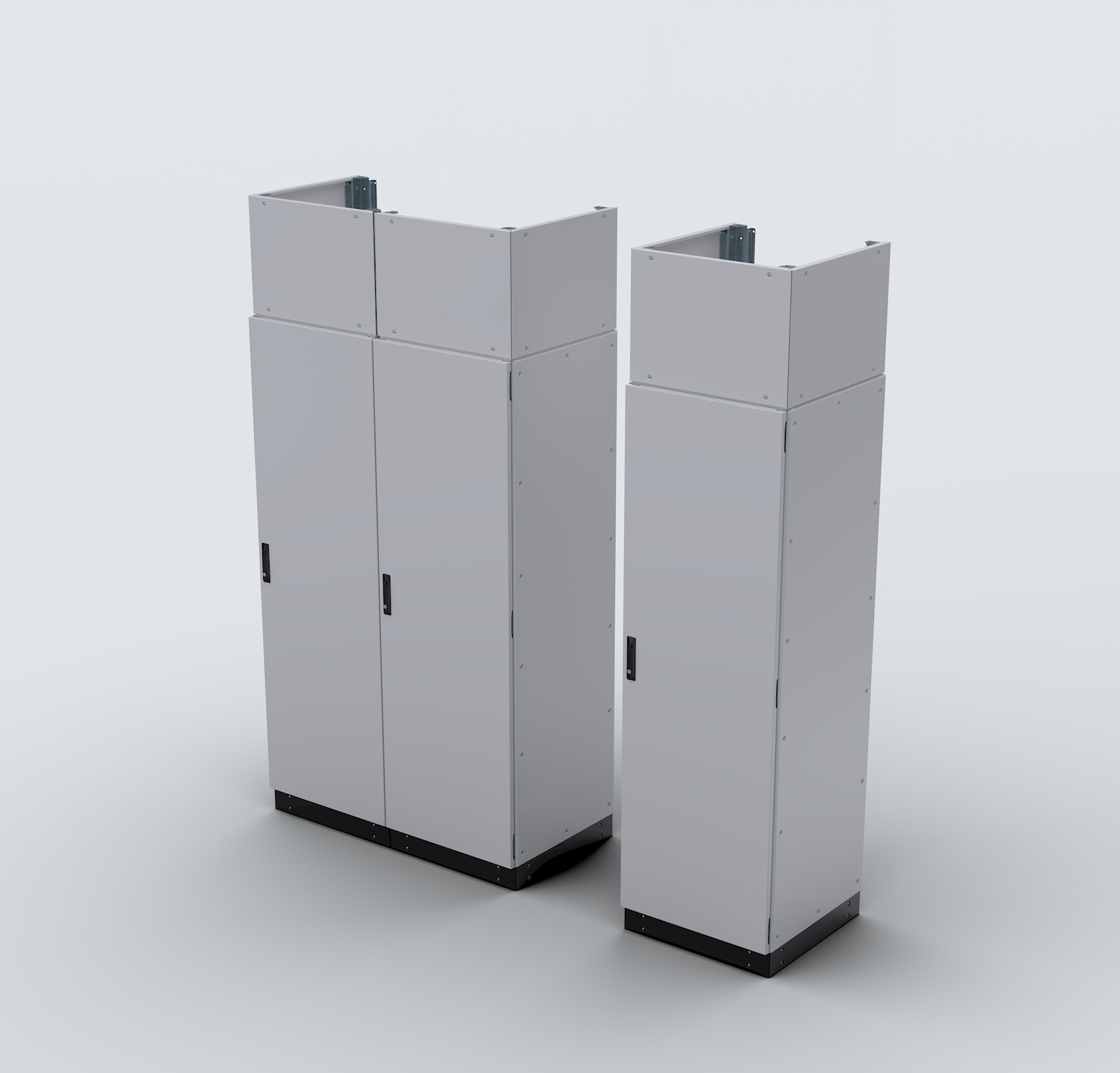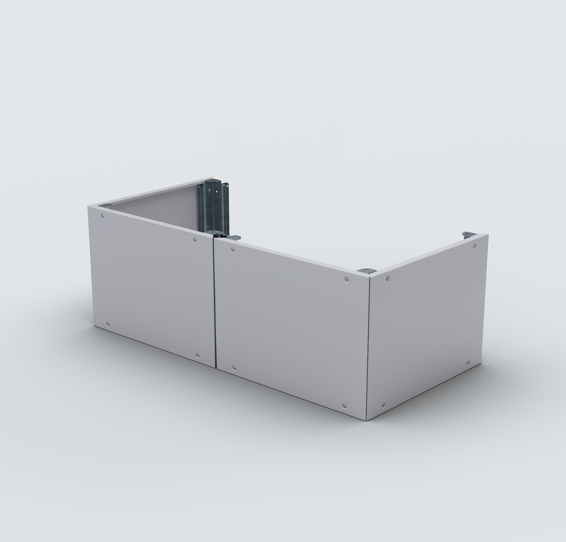 Kablo bacası, kabin dışından içeriye veya yan yana yerleştirilmiş iki kabin arasından kablo demetlerinin güvenli ve düzenli bir şekilde geçişini sağlamak amacıyla tasarlanmıştır. 1.5 mm kalınlığında galvaniz sacdan üretilmiş olup, elektrostatik toz boya (RAL 7035) ile kaplanarak korozyona karşı dayanıklılık ve estetik bir görünüm sunar. Tasarımı sayesinde toz, nem ve su damlamasına karşı tam bir bariyer oluşturarak kabin içindeki ekipmanları korur. Montajı kabin üst kısmına veya tavan paneli üzerine vidalı olarak yapılabilir ve böylece sağlam, güvenli ve pratik bir kurulum sağlar.