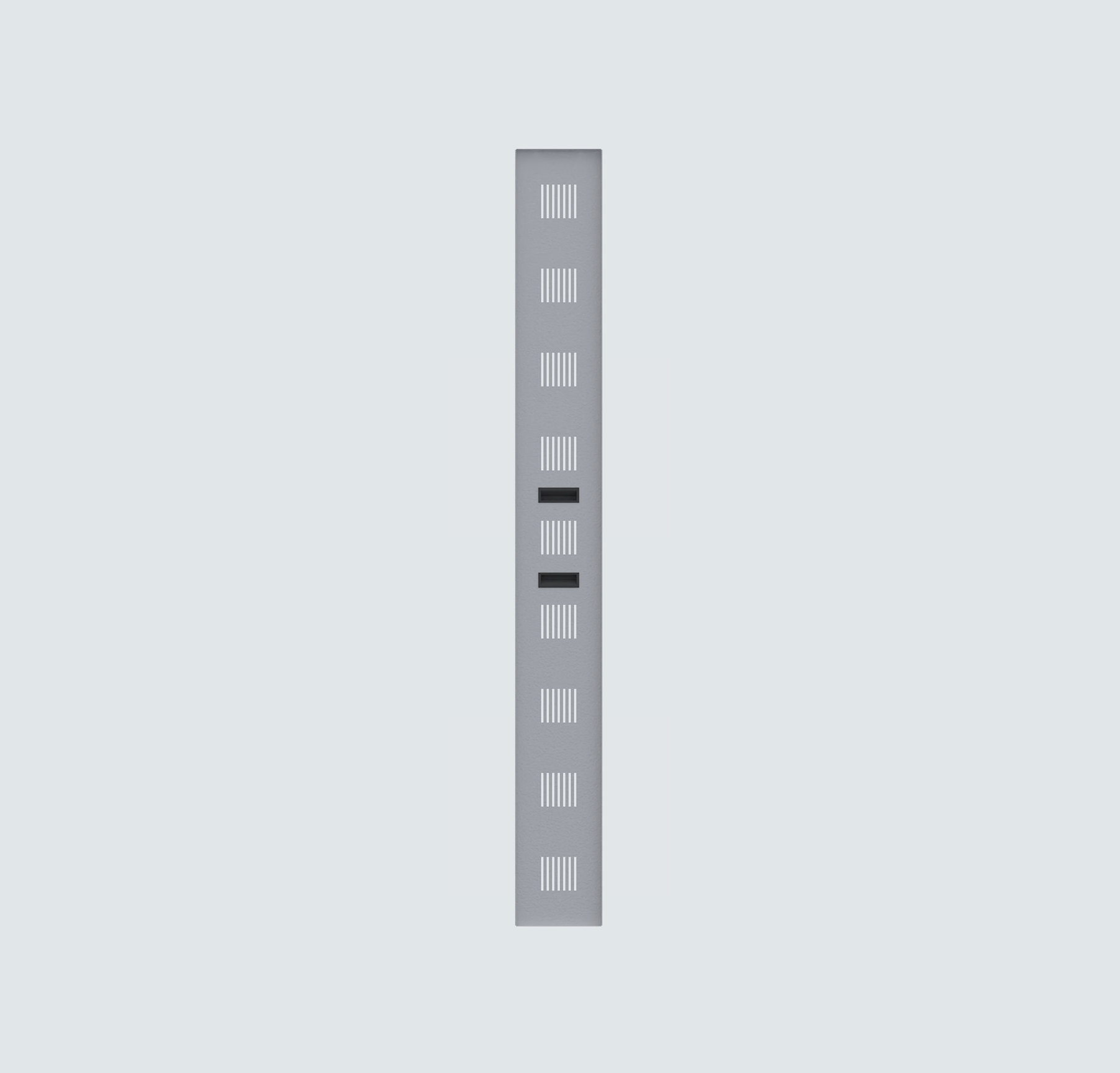 Bölmelendirme Örtü Plakası, kabin içindeki iki farklı bölme (örneğin: Güç ve Kumanda) arasındaki açıklığı kapatmak veya modül boşluklarını izole etmek amacıyla tasarlanmıştır. 1.0 mm galvaniz sacdan üretilmiş olup, elektrostatik toz boya (RAL 7035) ile kaplanmıştır. Mukavemetli bükümlü kenar tasarımı, sağlamlık ve dayanıklılık sağlar. Montaj, modüler 25 mm’lik kademelere vidalı şekilde yapılır. Kolay sökülüp takılabilen yapısı ile erişimi kısıtlayan bir çözüm sunar.