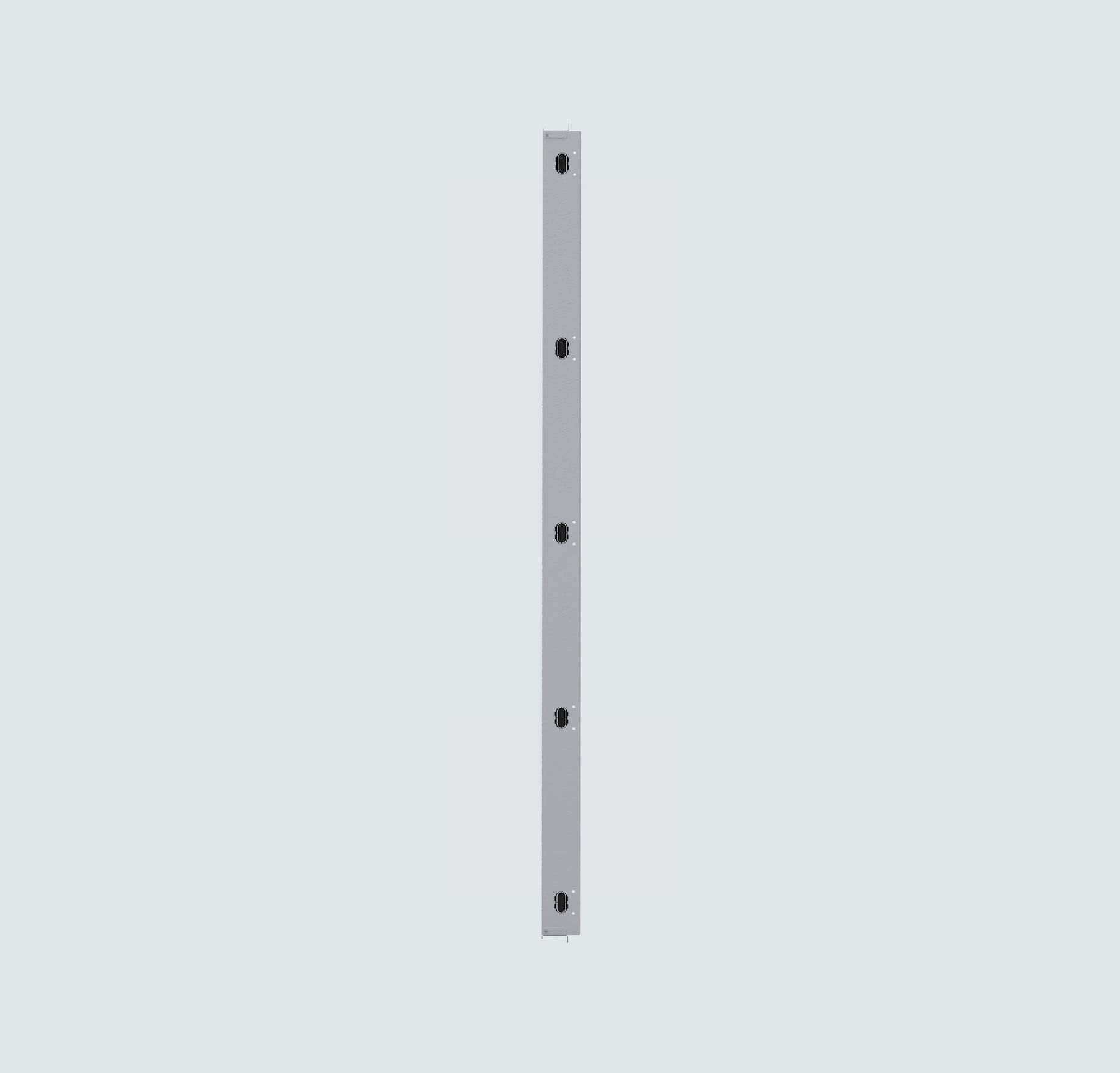 Örtü Plakası Profil Takımı (Taşıyıcı ve Sabitleyici), örtü plakalarını (özellikle Sayaç ve Standart tip) taşımak ve hizalamak için kullanılan dikey veya yatay çerçeve profillerinden oluşur. 1.5 mm galvaniz sacdan üretilmiş olup, elektrostatik toz boya (RAL 7035) ile kaplanmıştır. Standart delikleri, örtü plakalarının kilit mekanizmalarına ve vida yuvalarına uyum sağlar. Montaj, kabin ana dikmelerine vidalı olarak gerçekleştirilir.